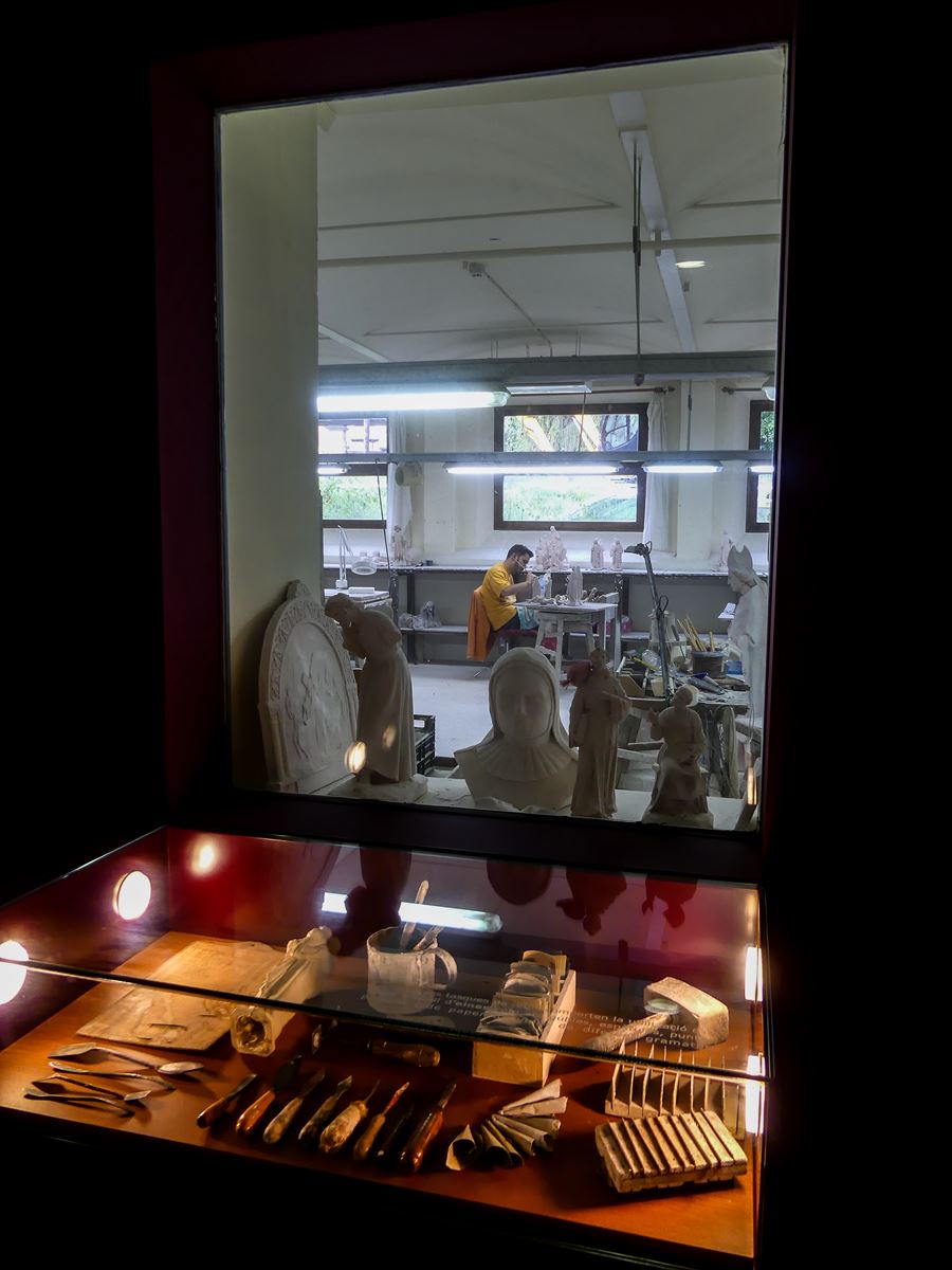 La visite commence au sous-sol, vous pouvez voir les outils qui sont utilisés par les artisans, et surtout, grâce à des parois de verre, vous avez vue sur l’atelier, où le travail est en cours. N’hésitez pas à vous munir d’une documentation en français au niveau de l’accueil.