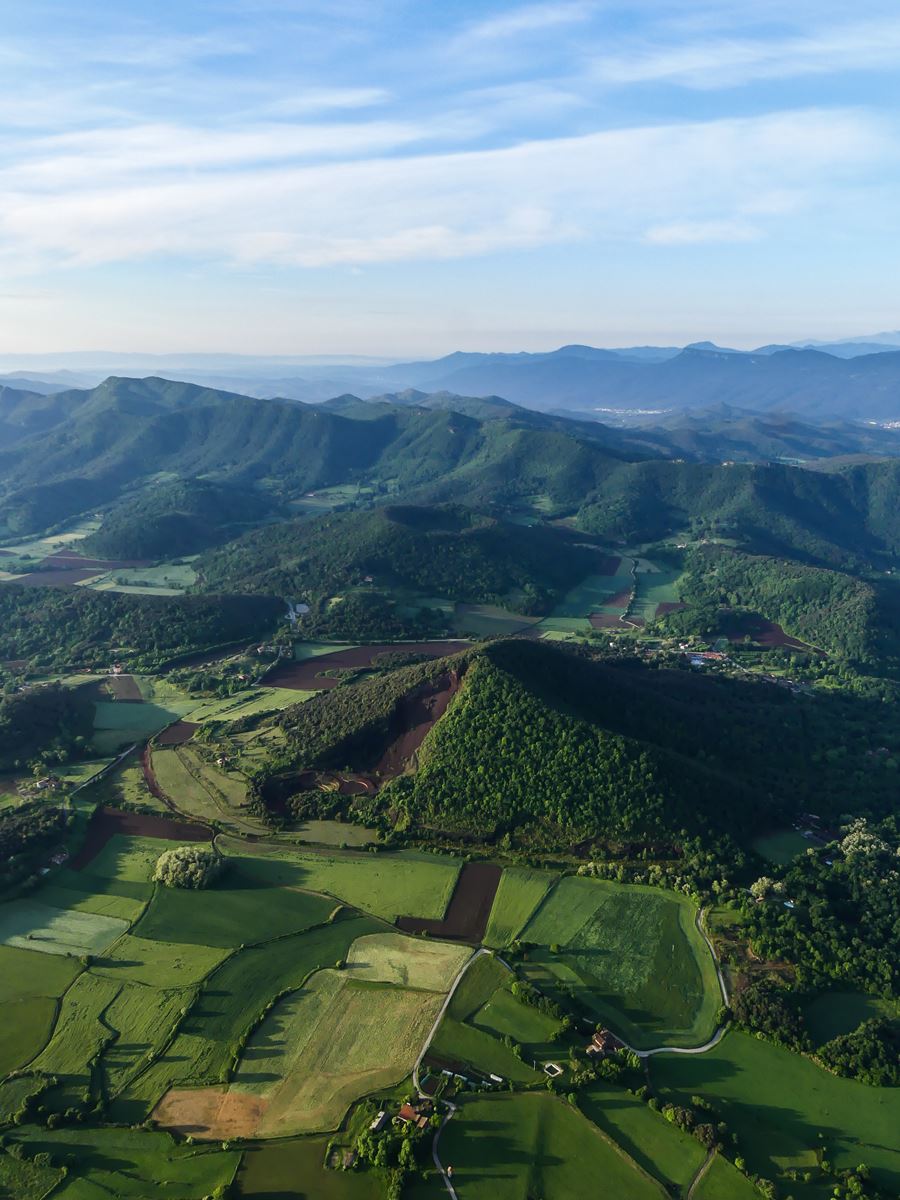 Situé à une quinzaine de minutes de marche du site de décollage de Vol de Coloms, le volcan de la Croscat est à voir, car il ressemble à un gâteau dont on aurait coupé une part. Anciennement exploité pour la production de grave (un granulat servant à la fabrication des chaussées, routes et pistes d’atterrissage) pendant 25 ans, il fait désormais partie du parc naturel de la zone volcanique de la Garrotxa.