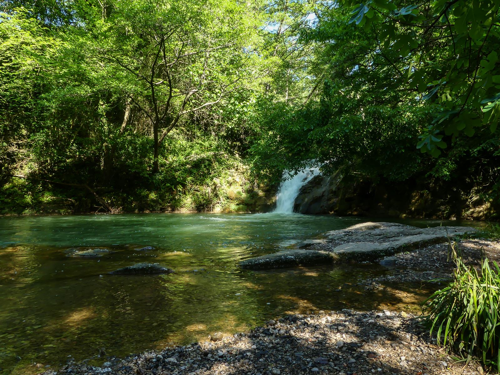 Le parking de 5 ou 6 places est à une centaine de mètres des chutes, encore une fois, l’eau est limpide, le lieu est plutôt calme, mais il y a déjà plus de personnes, et en plein été, je ne suis pas sûre que ce soit très agréable de marcher en plein soleil pendant une bonne demi-heure si ce n’est plus et de trouver des dizaines de touristes massés autour de la cascade. Privilégiez le hors saison si vous le pouvez, c’est bien plus agréable !