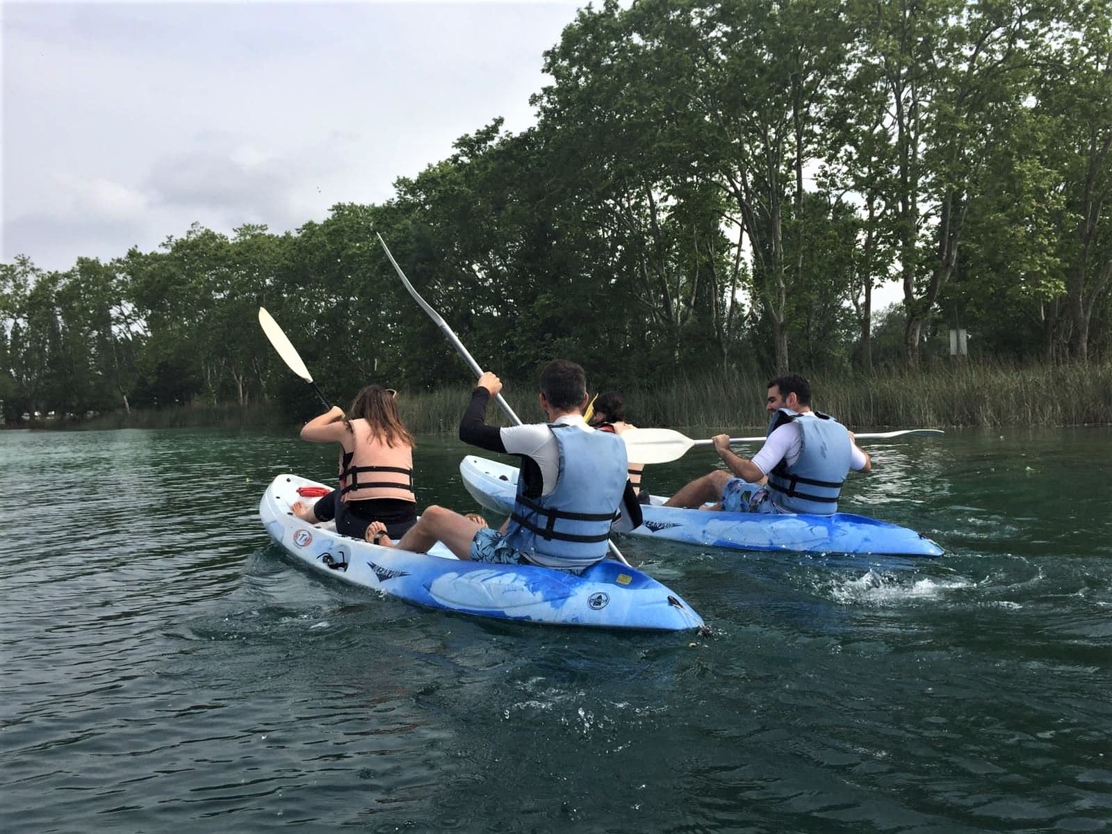 Nous avions eu bien chaud à Gérone ce matin-là, et pour se rafraîchir (et éliminer le délicieux restaurant du midi), rien de tel qu’un peu de kayak ! Pour cela, nous nous sommes rendus un peu plus dans les terres, dans la province de la Gérone (tout près de la Garrotxa), à Banyoles.