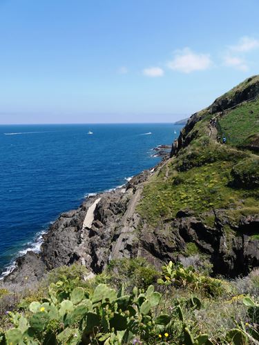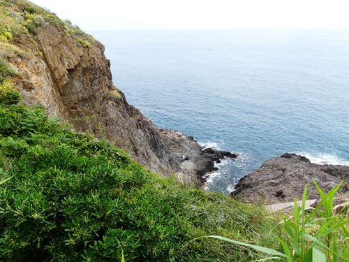 Le chemin côtier est vallonné, génial pour faire travailler un peu les fessiers ! Par contre, le passage pour marcher le long de la corniche n’est plus ouvert du tout et il aurait été trop dangereux de passer sur côté du portail fermé, le vide et les barbelés sont assez dissuasifs ! C’est dommage car mon frère avait pu y passer et d’après lui, on avait une des meilleures vues du trajet.