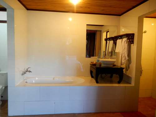En mars 2023, j’ai passé une semaine au Khong Cam Garden Villas. J’avais pris une grande chambre pour environ 28€ la nuit avec petit déjeuner. Il n’a pas fait si chaud que ça donc je ne me suis pas baignée. D’ailleurs, l’inconvénient de cette piscine est qu’elle est au niveau de l’entrée de l’hôtel : pas très intime avec la rue à côté. Mais sinon, c’était très bien, l’emplacement était chouette.