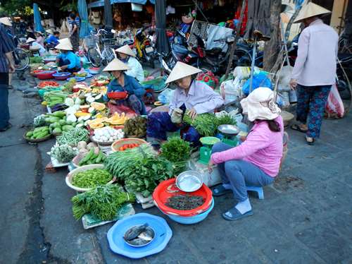 Nous retournons à Hoi An en bateau, un repas léger à base de riz et de légumes nous est servi à bord.