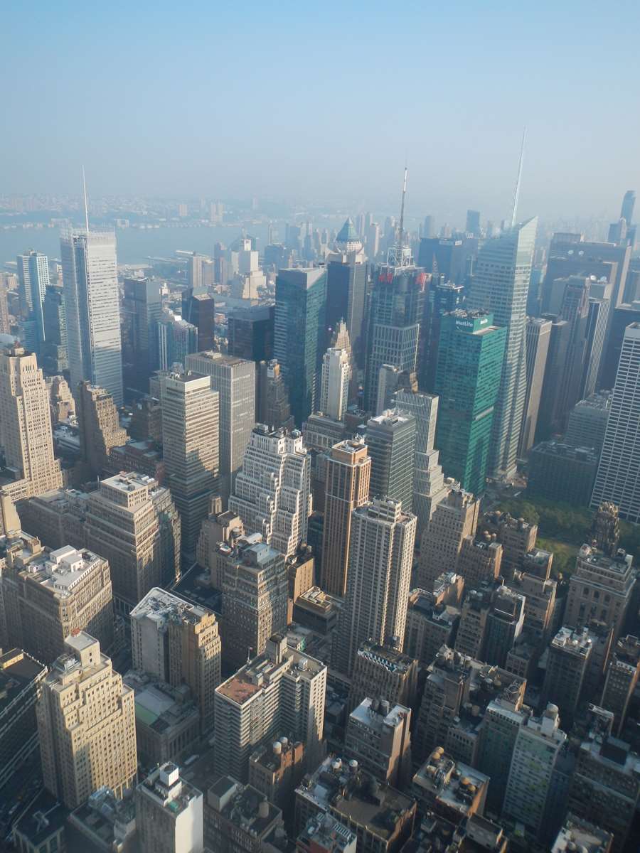 Sous la brume matinale (et la pollution) nous avons d’un côté Central Park et de l’autre l’Empire State Building !