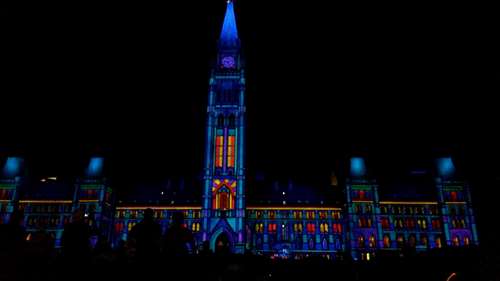 Elle m’emmène ensuite manger un bout en dehors du centre. Nous revenons ensuite sur les pelouses du Parlement pour un show son et lumières. Commenté en français et en anglais, ce spectacle raconte l’histoire du Canada. Les effets de lumière sont vraiment exceptionnels, on en prend plein les yeux !!