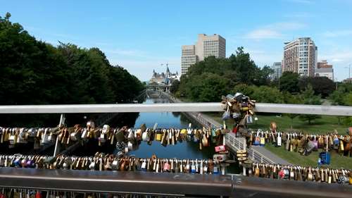 Afin de rejoindre Briana à l’heure du déjeuner, je longe tranquillement le Canal Rideau. Une balade à faire sur une piste cyclable sur long du canal, avec les joggueurs, et le tout à l’ombre !