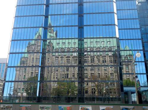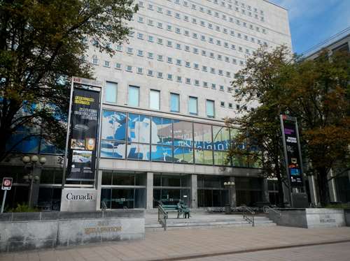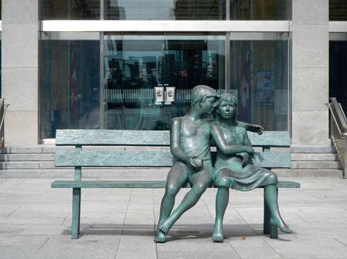 J’ai traversé le pont du Portage et continué sur l’avenue principale en direction du Parlement. Je passe alors devant la bibliothèque et archives. Devant le bâtiment se trouvent les statues d’un couple sur un banc, c’est mignon tout plein !