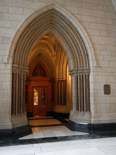 Pour visiter le Parlement d’Ottawa, c’est très simple : vous vous rendez dans l’office de l’autre côté de la rue, et on vous donne un bon pour l’horaire (et la langue je crois) qui vous convient et pour lequel il y a encore de la place, c’est gratuit ! La visite m’a enchantée ! Nous avons pu voir la magnifique bibliothèque qui a résisté à l’incendie du Parlement, d’immenses corridors, la chambre…