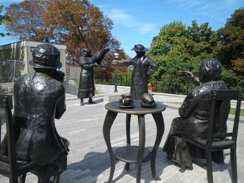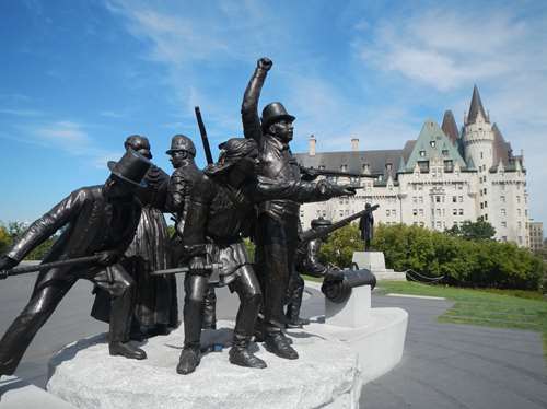 Juste à côté du Parlement, j’approche du Château Laurier (hôtel Fairmont). Dans les alentours, j’admire les statues qui font référence à la guerre, aux Droits de la Femme, aux civilisations…